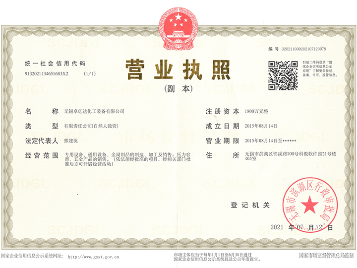 無錫卓億達化工裝備有限公司 質量合格、誠信經營、互惠互利、真誠相待